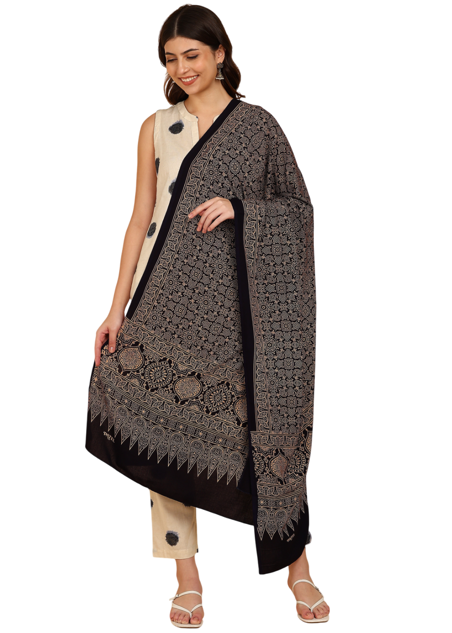Ajrakh Print Premium Rayon Dupatta (Black)