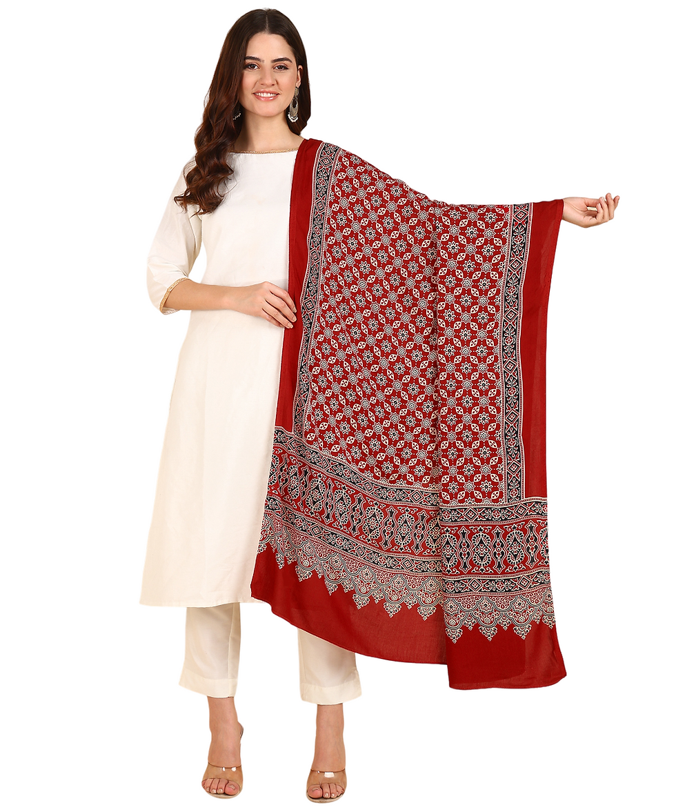 Ajrakh Print Premium Rayon Dupatta (Red)